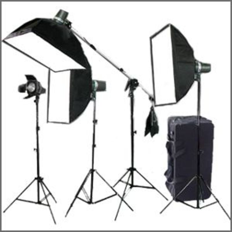 Four MonoLight Strobe Photo Studio Flash Kits with Boom, Softbox, and Case