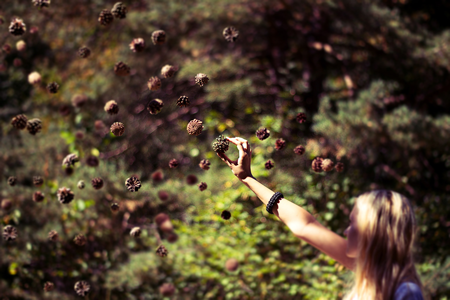 Заших 15-20 кадъра в един. Никоя от шишарките не са местени от оригиналните им позиции във въздуха, исках да е максимално "натурален" кадър.
