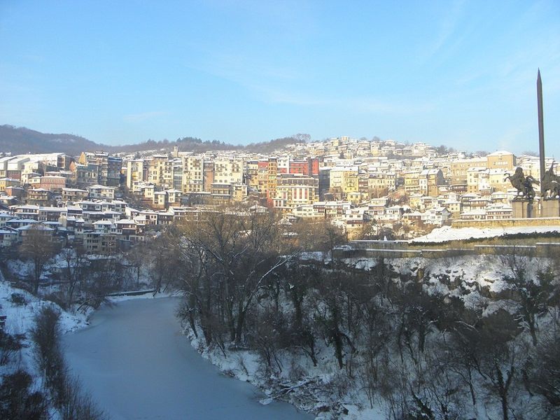 Зимна приказка от Велико Търново. Река Янтра е замръзнала.