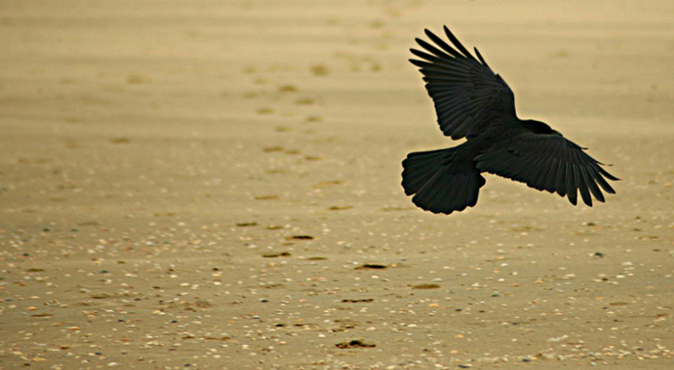 Black bird over the footprints...