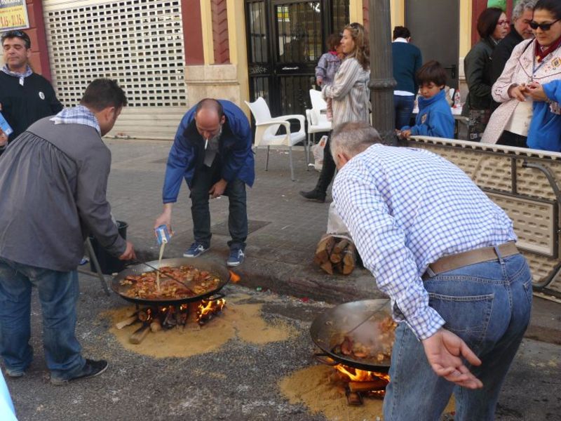 Правене на паеля във Валенсия, Испания.