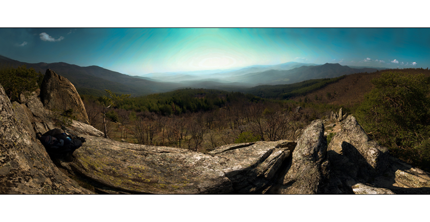 Панорама от 39 кадъра заснета от върха на скалата.Открива се гледка към Чепинската котловина.Намира се на около 10 километра от Велинград в планински масив Алабак.В близост има тракийско скално светилище.