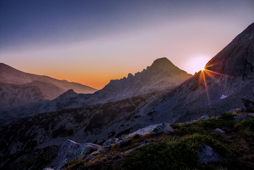 Изгрев на Тевното езеро, между връх Джангал и връх Момин двор