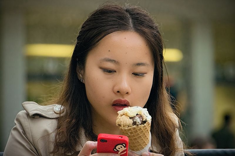 Чаках госпожицата да близне телефона и да зацъка с палци по сладоледа, но не се случи (още не са направили сладоледи с Фейсбук, където да види гаджето си :)