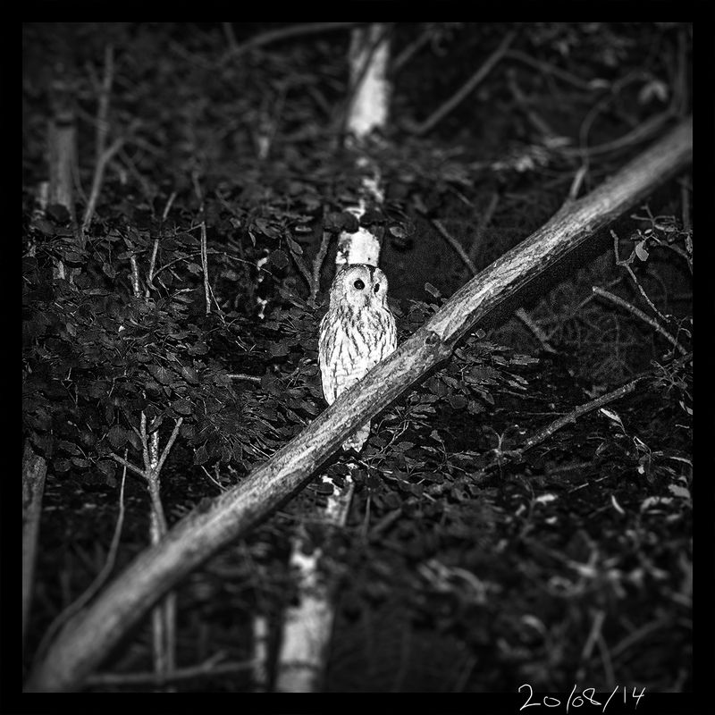 С прекрасната ми приятелка решихме вчера вечерта да се поразходим и тръгнахме към хижа Алеко. Точно след един завой, буквално на границата на светлината от фаровете (който е карал по тъмно до там ще знае, че е абсолютно пълна тъмница) видях как тази красавица лети и каца. Веднага спирачка, малко назад... и щрак! Якото е, че успях да фокусирам в тази чиста тъмница от първия път и че сови/бухали са ми любимите птици. Светлината е от светкавицата на апарата. Само един кадър снимах, защото не исках да тормозя животинчето.
