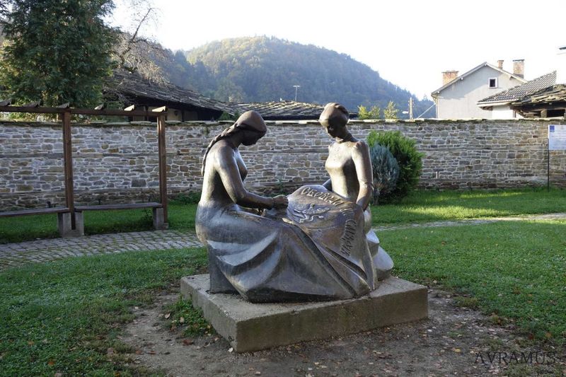 Девойки шият знамето за Априлското въстание .