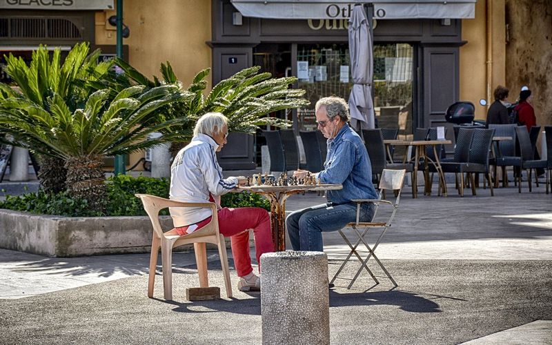 Двама господа играещи шах в центъра на Сен Тропе,
