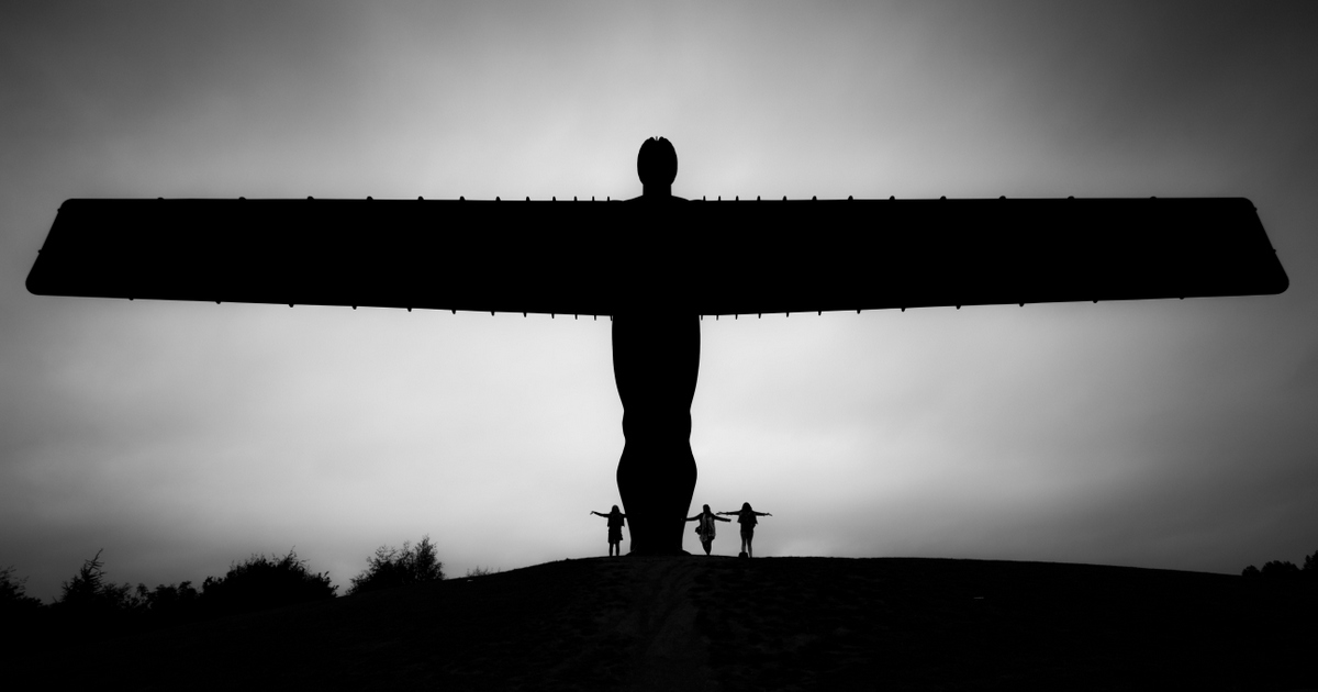 Статуята се извисява на 20 метра височина ( 4 двуетажни автобуса . Крилата - 54м. (размер на джъмбо самолет). За да издържи на ветрове от всякаква скорост, основата на статуята е с дулбочина от 33м. пробивайки 3 слоя почва и скала. Тежест 208 тона. Ангелът се вижда от повече от един човек всяка секунда.