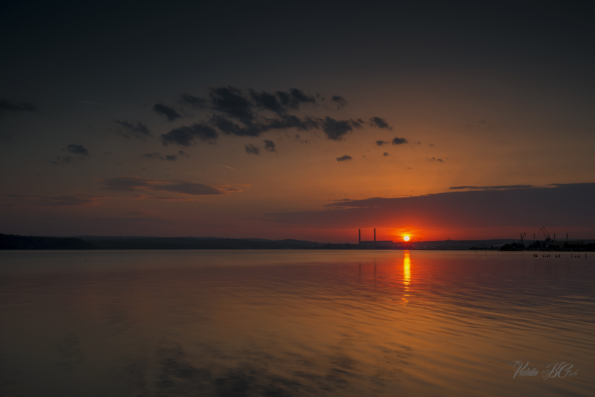 залез над езерото в Казашко