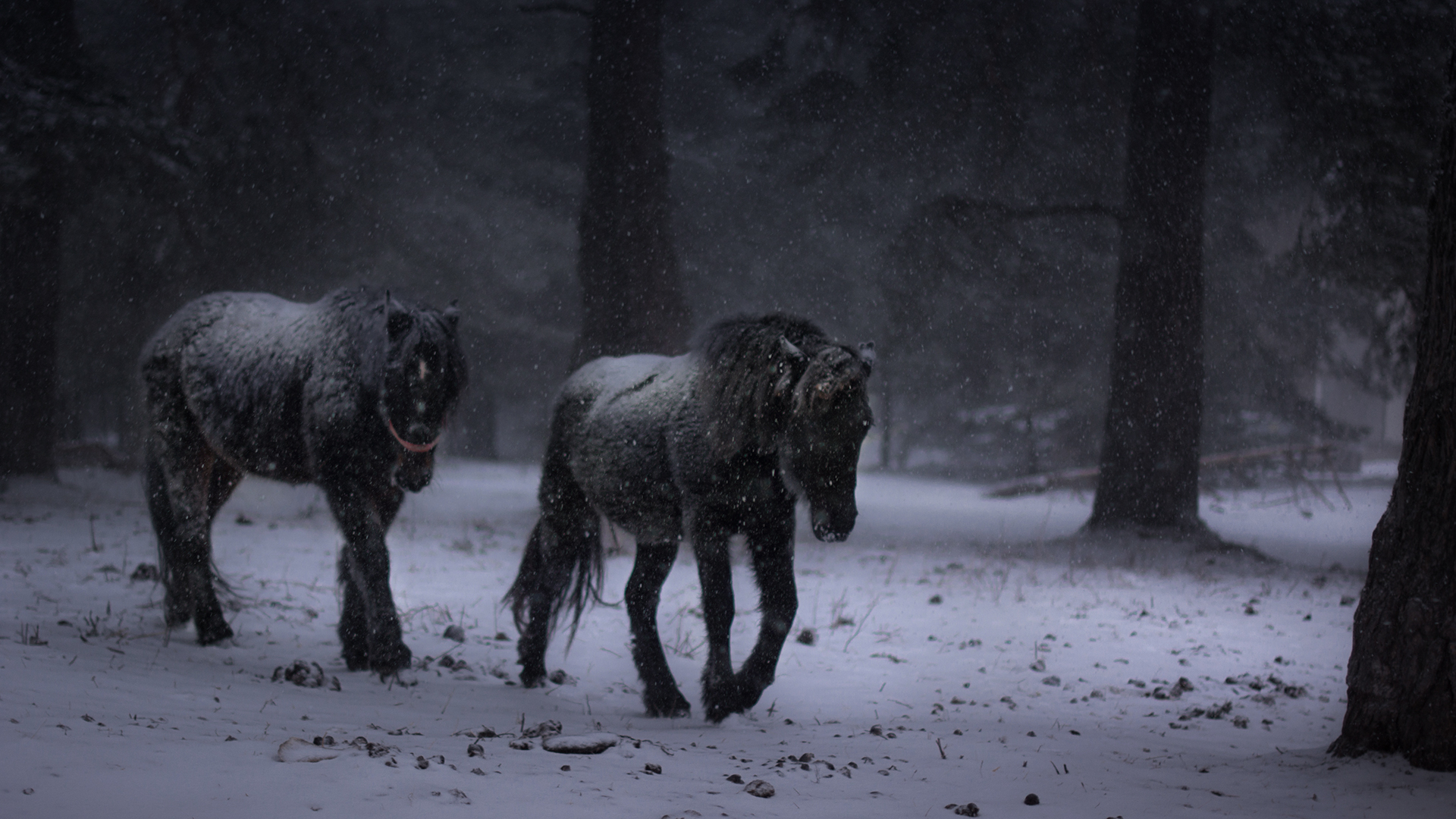 Зимен пейзаж с коне