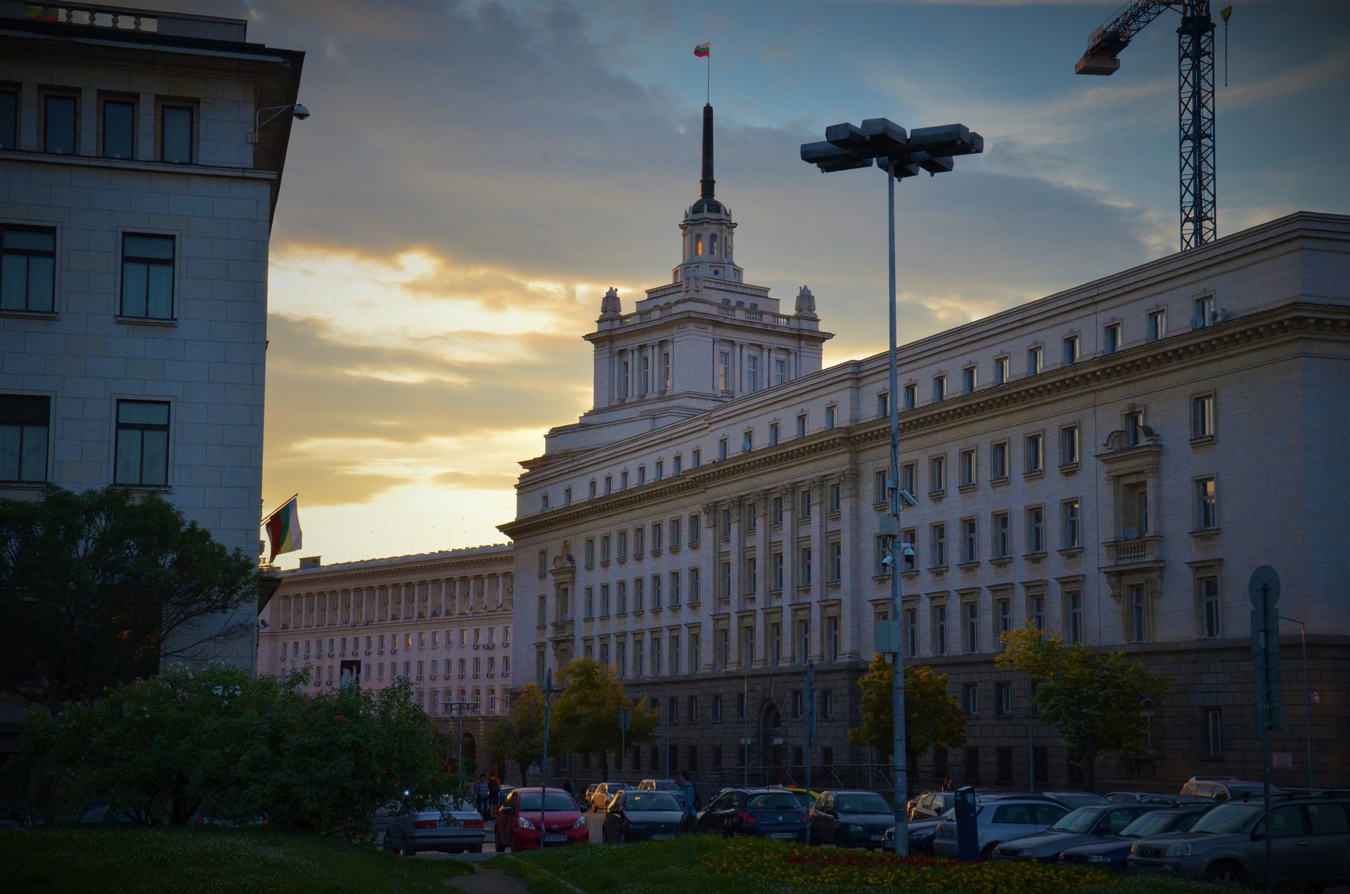 Площад „Независимост“ (Ларгото) и Народно събрание по време на залез