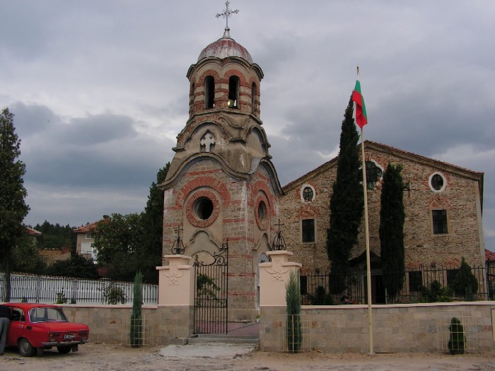 Църква, трибагреник и москвич