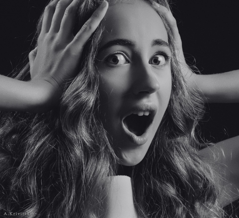 girl, portrait, studio, emotion, hair,