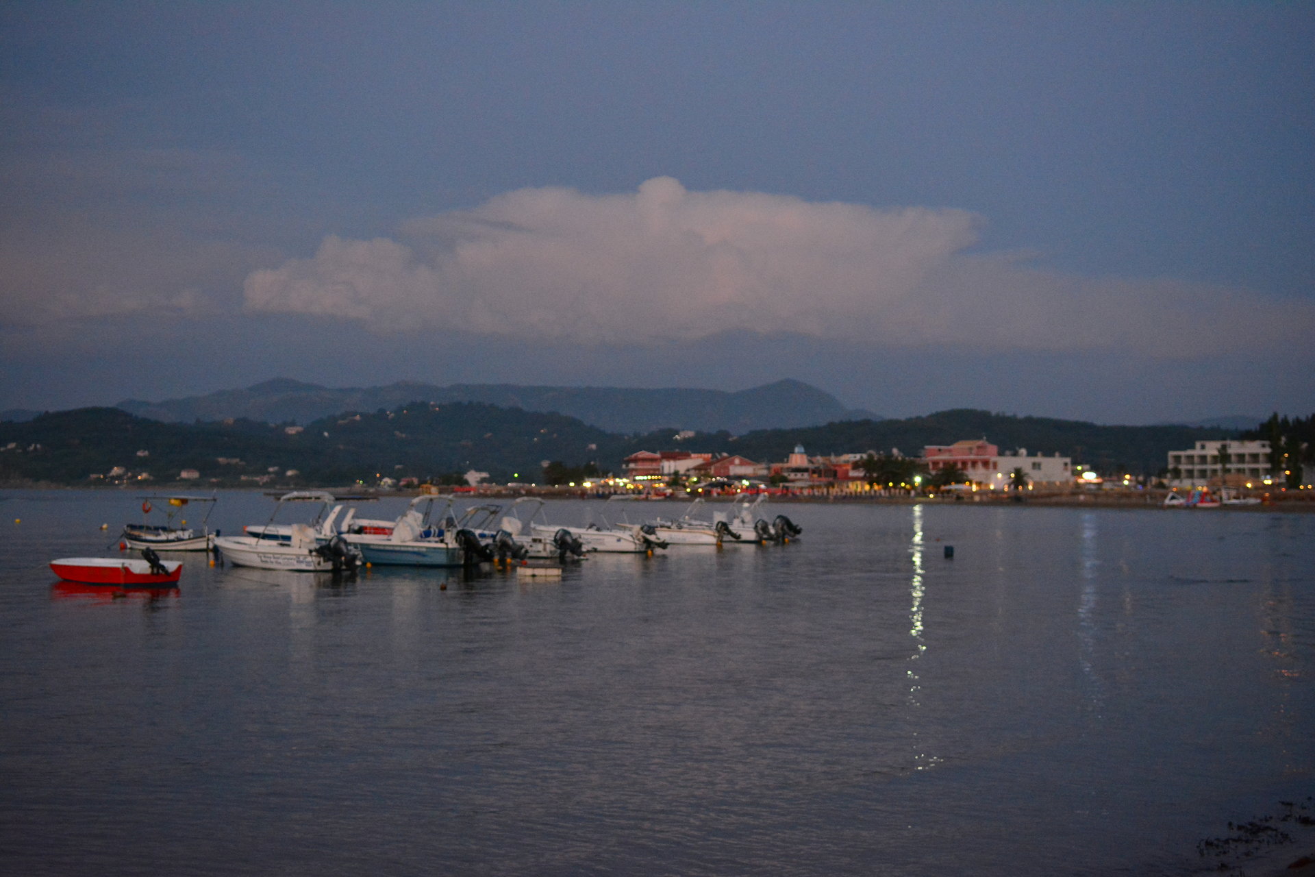 Заливът на Sidari след залез слънце.