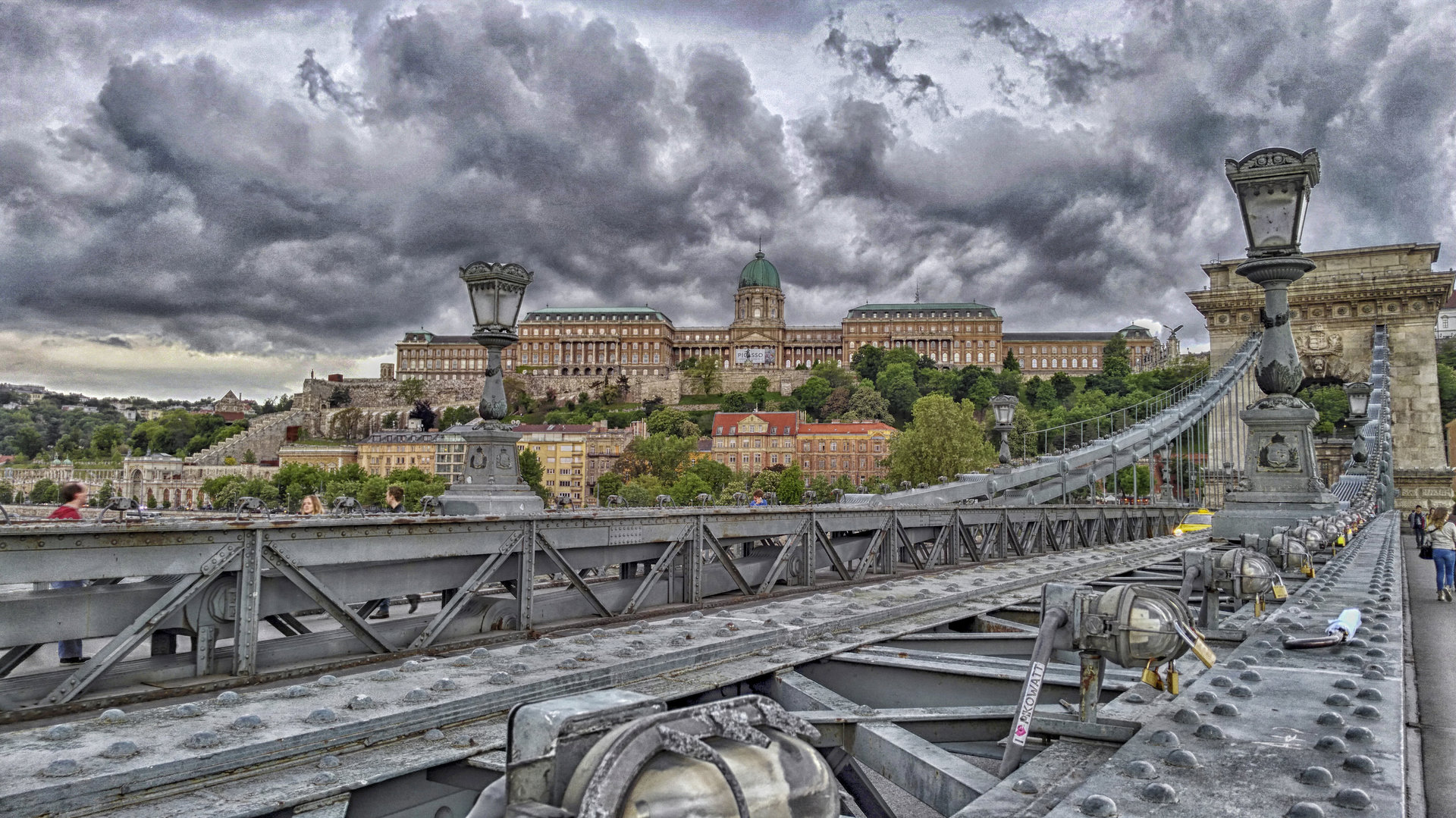 Будапеща, Унгария. The Széchenyi - верижният мост над река Дунав.