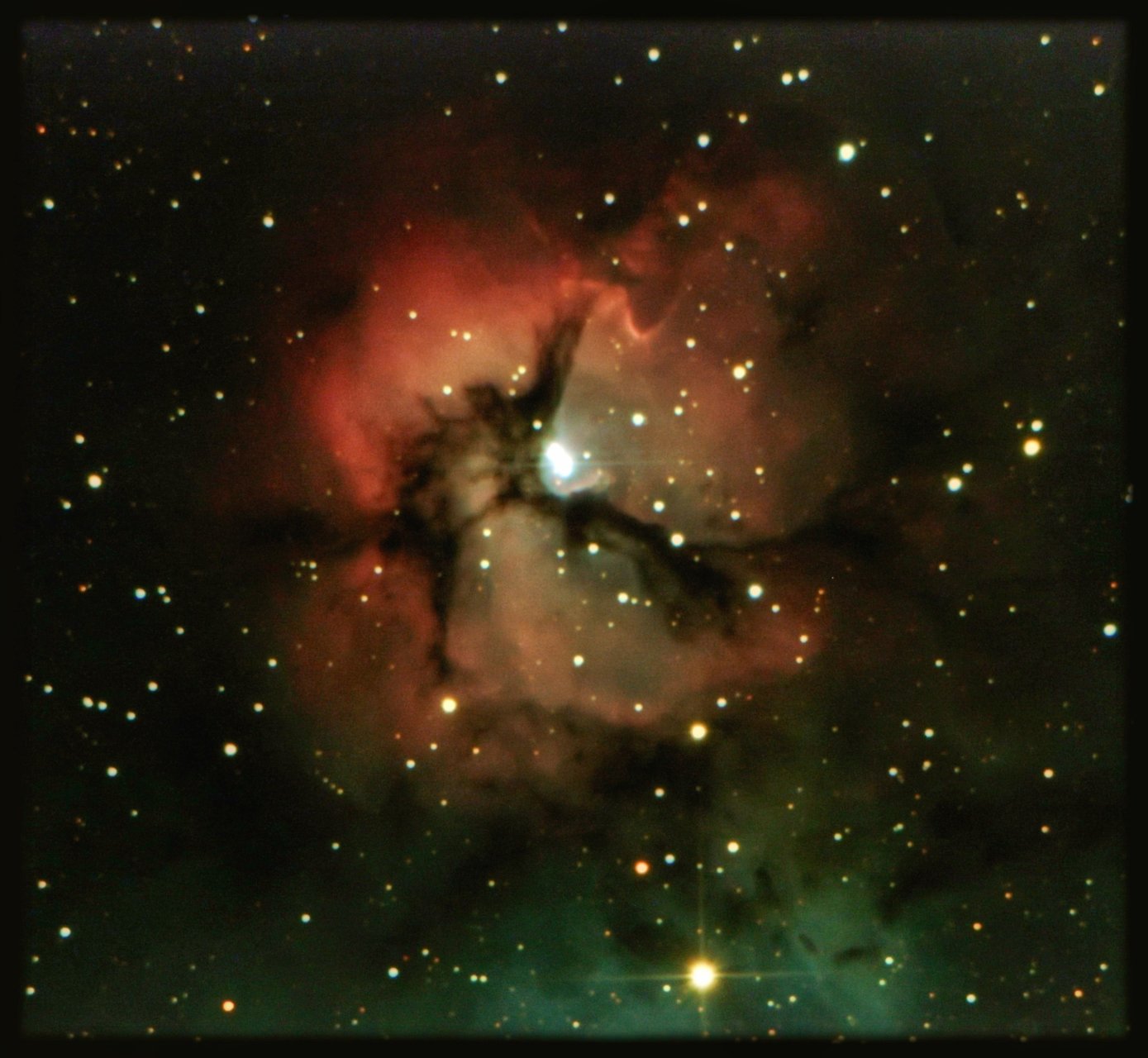 The Trifid is located some 4100 light years away from Earth and is around 42 light years in diameter.