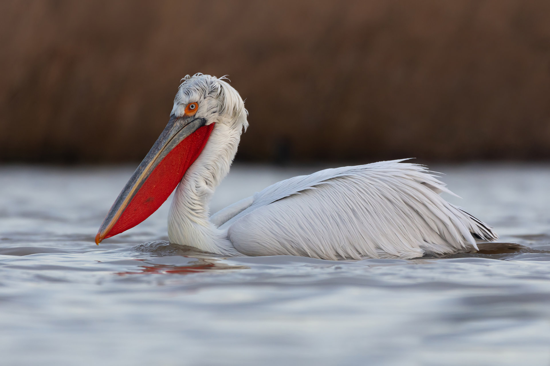 Къдроглав пеликан на яз. Мандра, януари 2021 г.