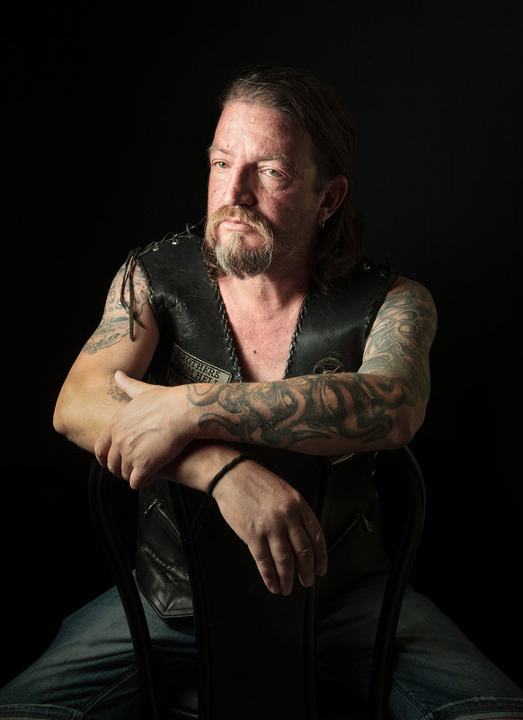 Моделът е представител на рокерското движение у нас от плът и кръв. Поради здравословен проблем, за който не пожела да говори се е отказал от "ездата" с бандата и моторът му е качен на "трупчета". Той ме впечатли със своите ексцентрични идеи, по-време на горещините в София, беше напълнил огромен надуваем басейн в центъра на хола на панелката, която обитава. В басейна имаше поставена масичка и столове. Тя беше покрита с бяла покривка, имаше изискана ваза с цвете. Той сподели, че обича да му е хубаво, когато си пие бирата. Не се съгласи да го снимам в неговата "светая светих", която му помага да преживее горещините.Впечатли ме високият праг на търпимост и липсата на тревожност, че при евентуален пробив в огромният басеин има опасност да залее съседите си, като след цунами, също така да предизвика срив в електрозахранването на жилищният блок.