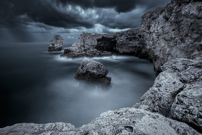 Знаех си, че трябва да отидем до Тюленово, дори напук на лошите прогнози. Или пък точно заради тях? Спомням си най-вече как до последно се опитвах да предпазвам апарата и най-вече филтъра на обектива, докато приключваше последната 5-минутна експонация, която успях да пусна преди черните облаци да надвиснат над главите ни... И така, на есен с песен и "малко" освежаващ дъждец през целия път обратно към Варна, но пък си струваше!