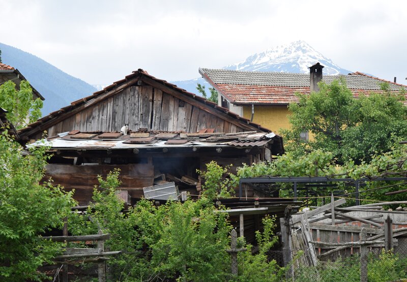 планина, развалини и котка