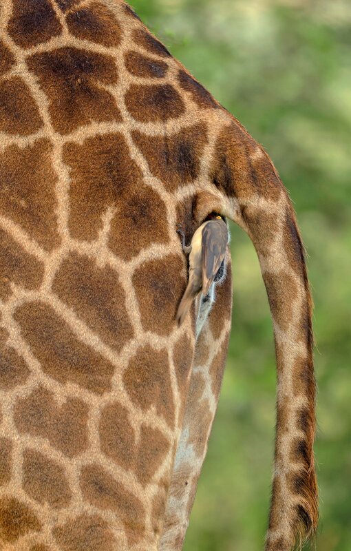 Масайски жираф и Червеноклюн биволски скорец Серенгети, Танзания Февруари 2025 Канон Р6 Марк II; Канон РФ 200-800мм