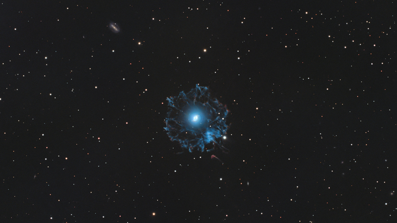 Обектът представлява планетарна мъглявина. Намира се в съзвездието Дракон на разстояние от 3 200 светлинни години от нас. Галактиката (горе) е NGC 6552 и се намира на разстояние от 360 милиона светлинни години от нас. Обща интеграция - 26 часа.