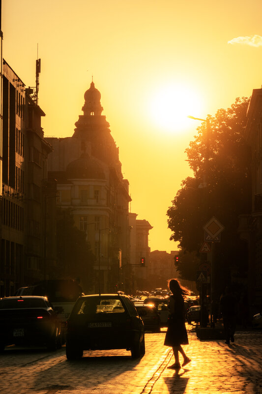 Залез над жълтите павета