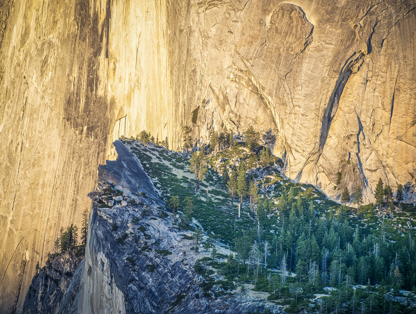 The blue diving board and the sunlit west face of Half Dome