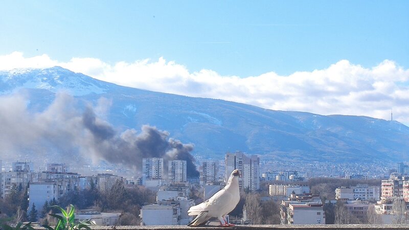 Докато гледах нещо на компютъра с периферното зрение видях движение, обърнах се и о! Гълъб! А като фон се оказа че има и пушеци от пожар! Молих се няколко секунди да не излети гълъбът докато успея да снимам. Осъзнавам че качеството на снимката е ниско, но все пак я споделям предвид комбинацията от случайни малко вероятни обекти в композицията :)