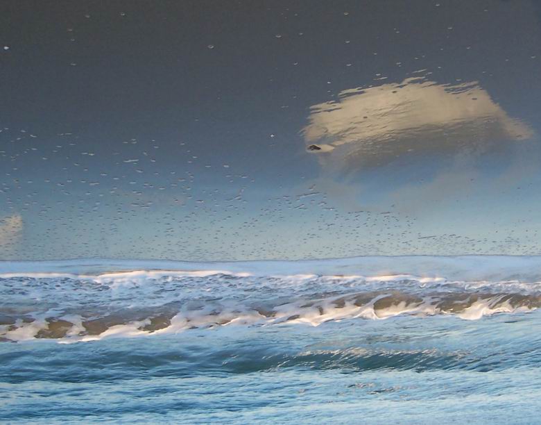 Отражението на облаците в току що облятия от вълните морски пясък. Всичко това обърнато на обратно :-) (вж.редакцията)