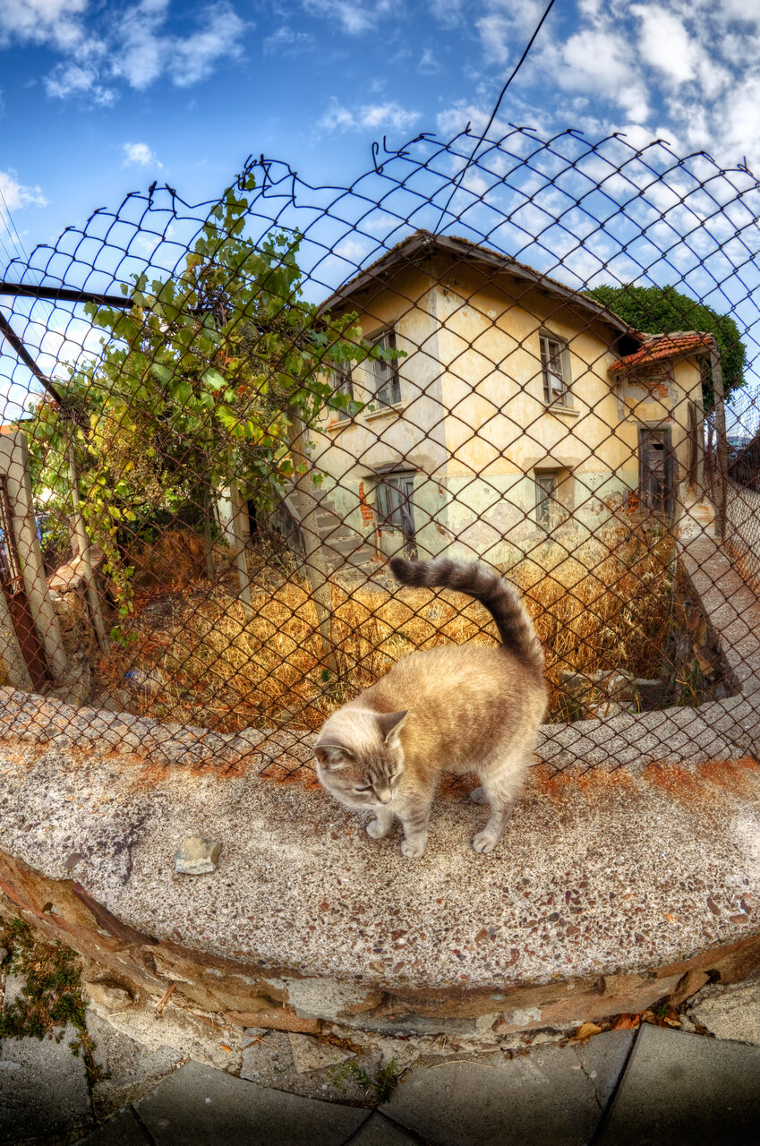 Фонът е същия цвят и не позволява на котката да се открои в кадъра. Предлагам сухите треви в двора да се тушират примернотака?