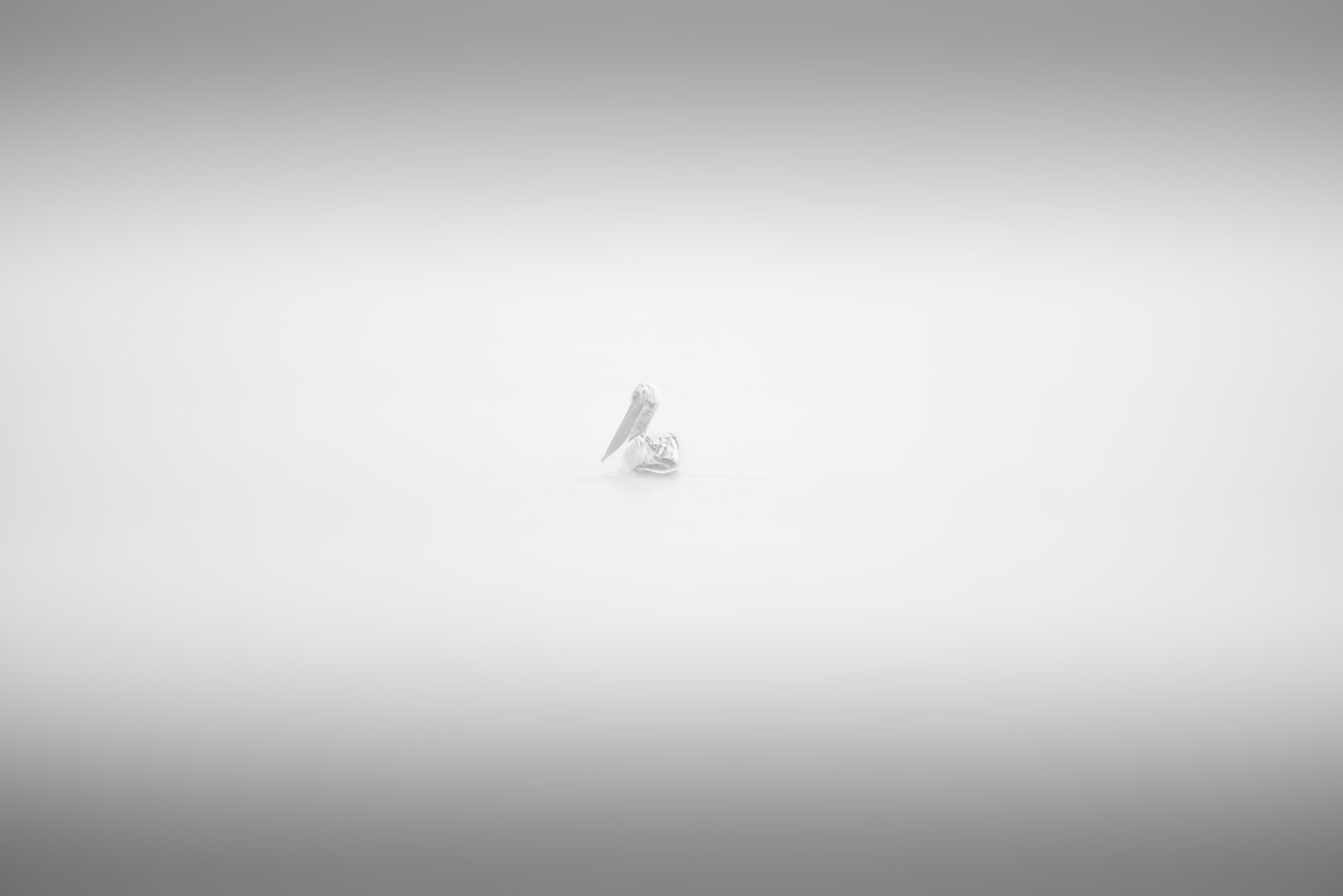 Когато природата ти предлага мъгла, тогава си направи черно бели снимки. Минималистичен кадър на пеликан изчезващ в мъглата .