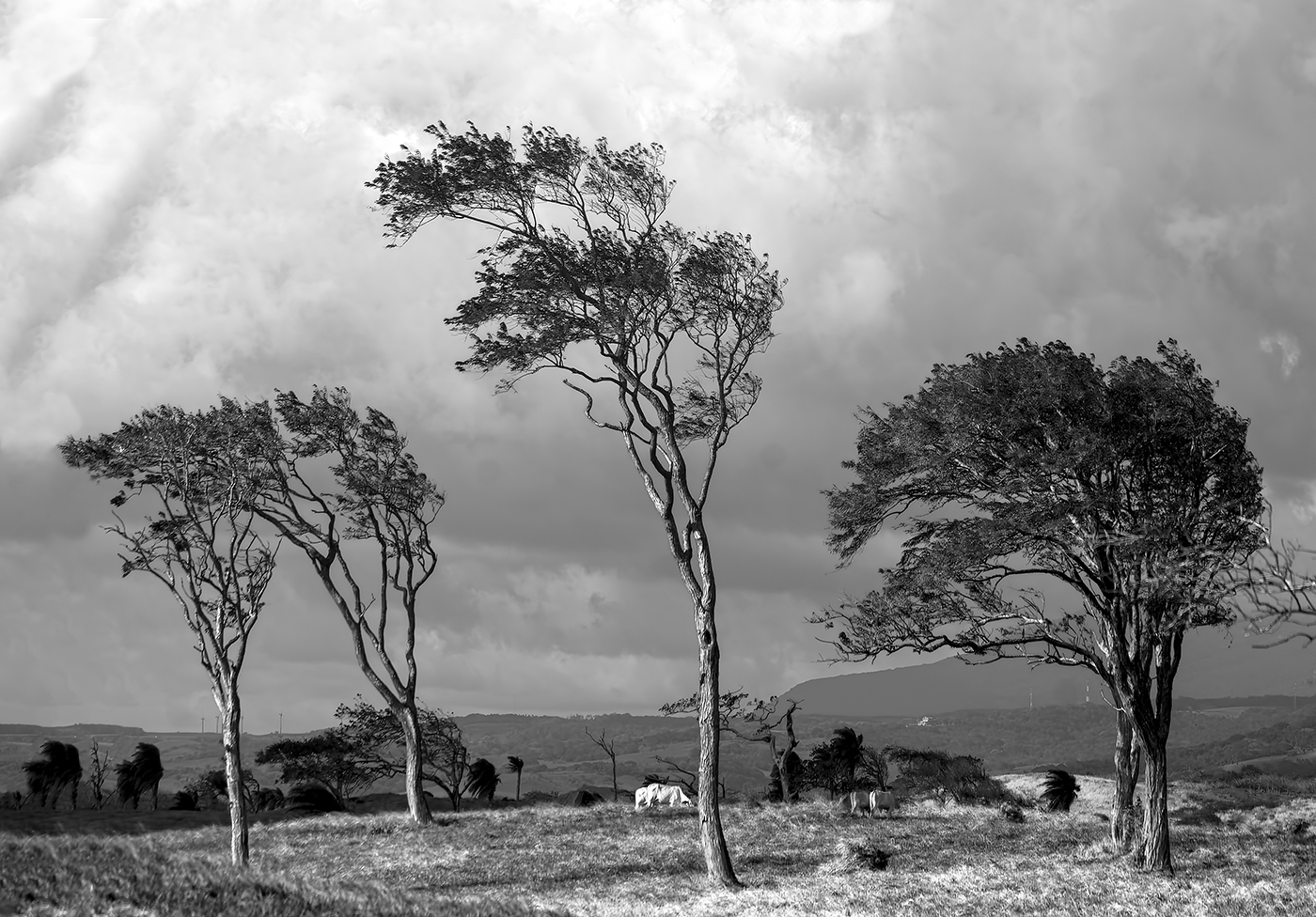 Тук няма вятър в момента на снимане.Дърветата бяха така наклонени.Местните казаха,че редовно духа силен вятър,просто съм уцелил тих момент.