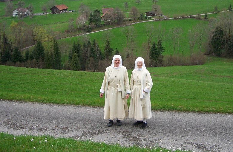 На високо,някъде в швейцарските Алпи,разхождайки се,забелязах две монахини-наблизо имаше църква и малко параклисче.Помолих ги да им направя снимка и те ми позираха с голямо удоволствие,и се смяха от сърце..