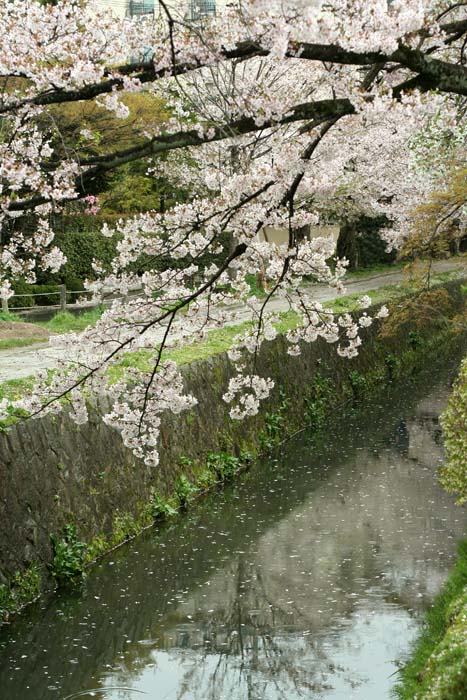 Дългият път осеян с листа на сакура към Гинкакуджи, Киото