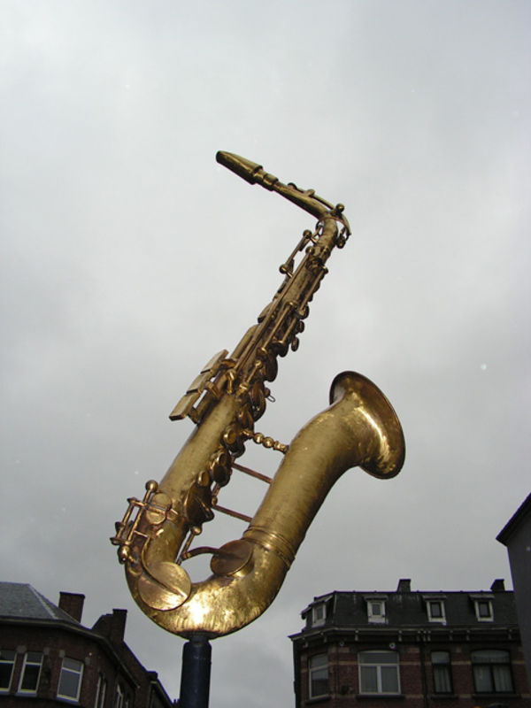 Паметника на саксофона в родния град на Adolphe Sax - Dinant, Белгия