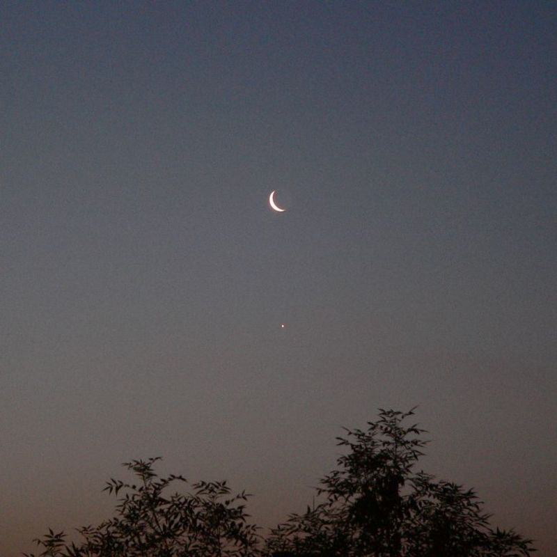 Венера се наблюдава на земния небосклон като Вечерница или като Зорница - залязва малко след Слънцето или изгрява малко преди него. Така че когато Луната е до Венера винаги е "месечина" - полумесец.