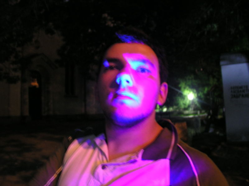Снимката е правена на 18 юни 2005г., с Olympus C5050 ама чак сега я намерих на един стар хард. Осветлението е модерна запалка със син светодиод, не зная дали не участва и червено от АФ илюминатора. Компютърна обработка няма. Само рисайз