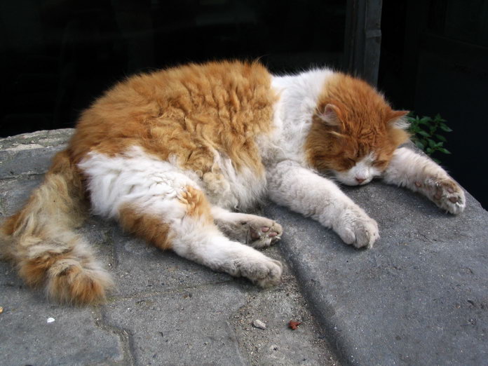 Истанбул. За двудневния ми престой там видях тази котка поне десет пъти и през цялото време беше в подобно състояние:)