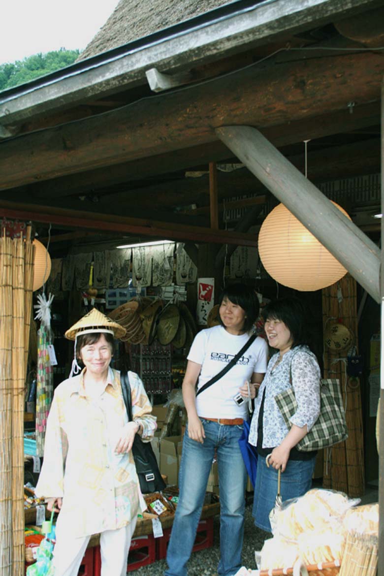 Весела проба на японска традиционна шапка в традиционното селце Гокаяма