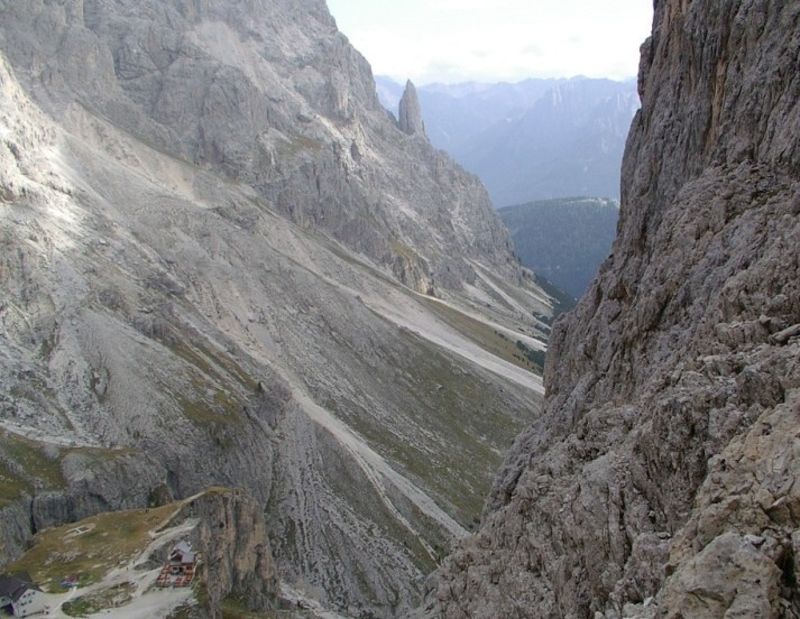 Поглед от скалите в Доломитите към площадката с хеликоптера!