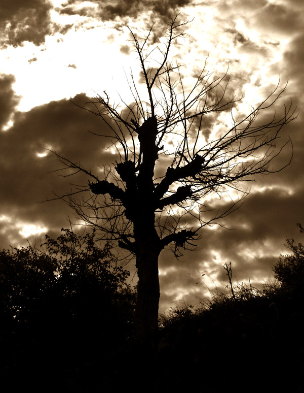 природата заспива, дървото от студа се страхува, лют вятър нахлува, плаши природата, гората; окапват и на дървото листата само щом се зададе зимата....