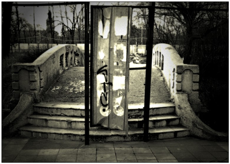 Буквалната страна е разпадащата се 25 годишна ограда на езерото Арияна -- символиката се крие в очевадното безумие