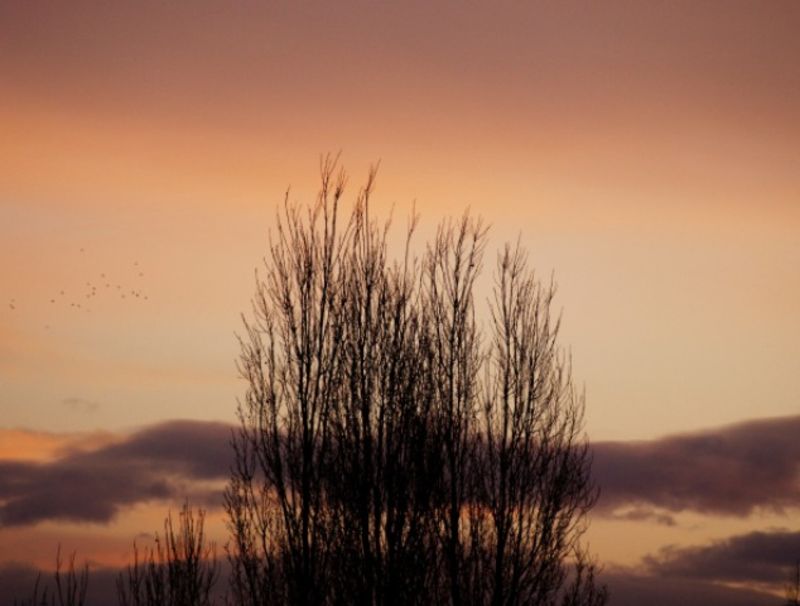 И някакви птици прелитат зад тополите, сигурно гълъби, какво друго тук през зимата.