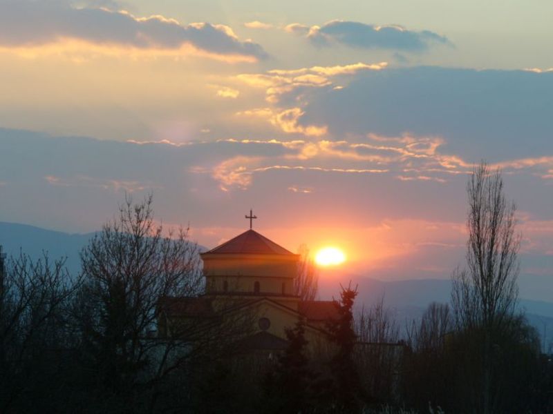 залез над църквата на хълма