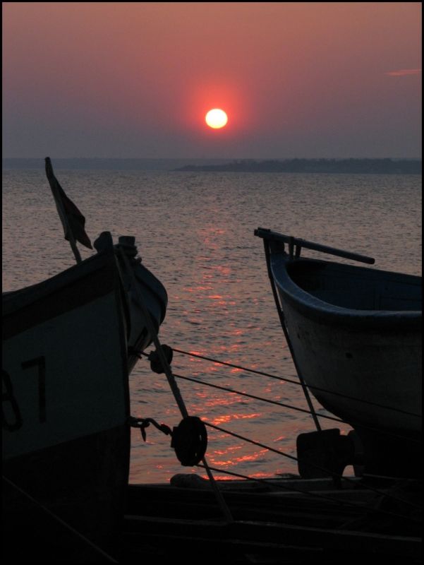 Evening sunset seen from fishing harbour Pomorie.