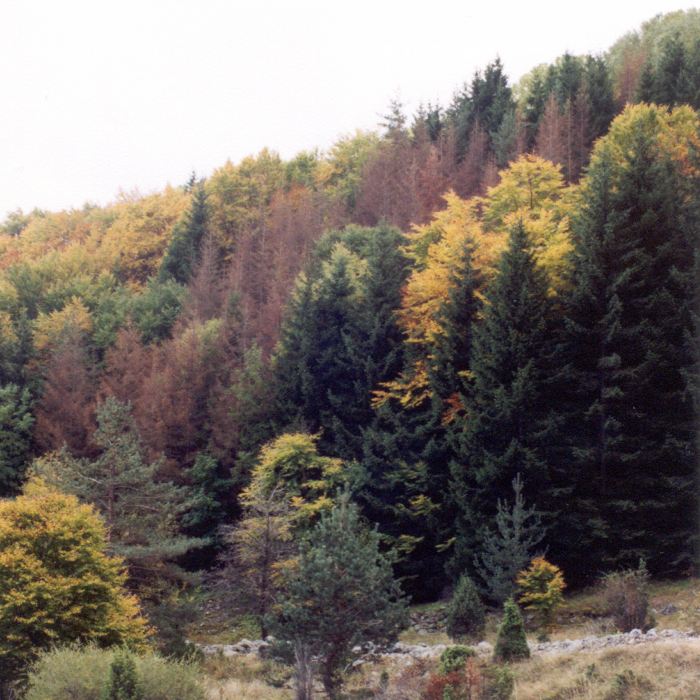 Това е изолирано иглолистно петно сред буков масив на склона край реката, която влиза в с.Железница. Цялото е изсъхнало. Не знам как короядът се е придвижил до там и защо се е спрял точно там... Важното е, че наистина се е спрял.