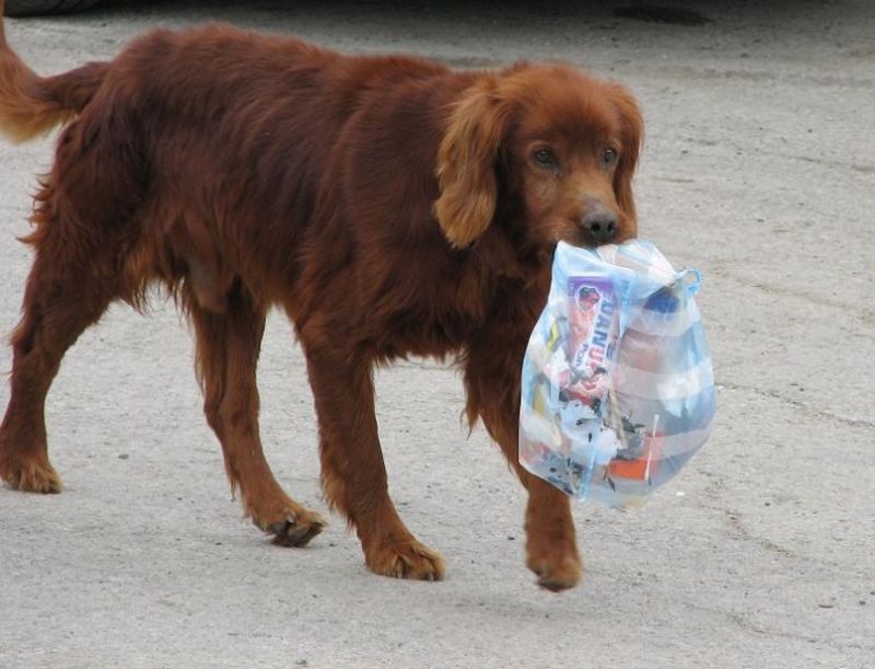 Този сетър наистина мина през центъра на Жеравна и пусна боклука в едно кошче