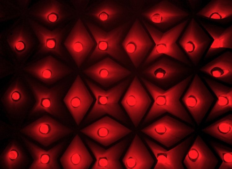 Таванът, от който влиза светлина в банята на турския султан в двореца Долмабахче в Истанбул. Сниката е тонирана допълнително в червено.