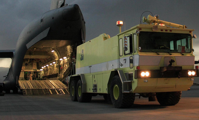 Току що разтоварена (от С-17) нова(?!) пожарна, за нуждите на международното летище в Кабул...